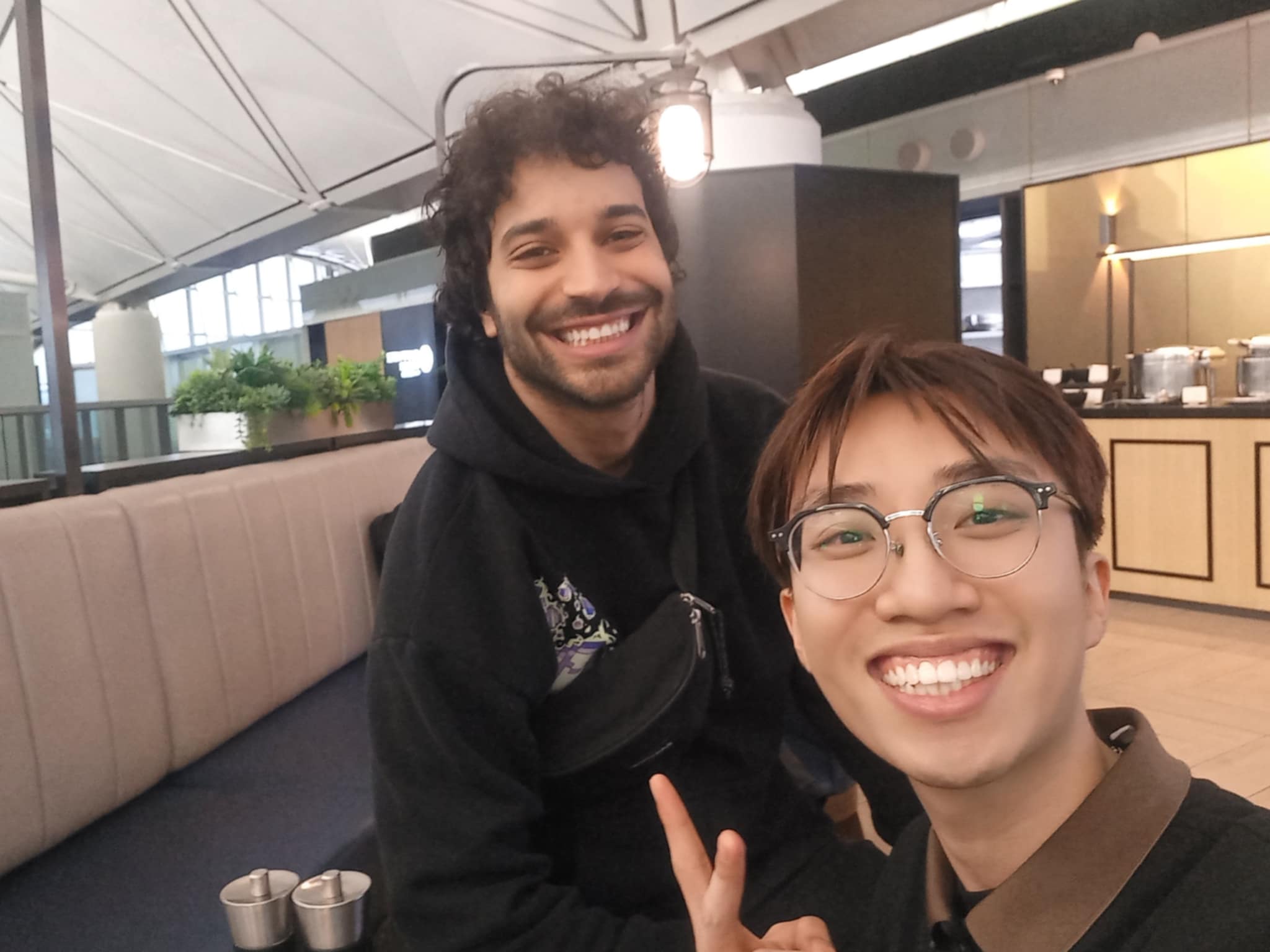 - Sau khi giúp chị gái kia lên cửa bay kịp giờ thì tôi nhắn tin cho ông lead security xem ổng đang ngồi đâu, thì được ổng dẫn vào 1 cái louge ở sân bay. Adu tôi được ăn buffet miễn phí hehe. Tự nhiên thấy việc đợi 10 tiếng cũng không quá khó lắm haha. Cảm ơn Carlo nhiều nhé, hẹn event sau gặp lại haha: